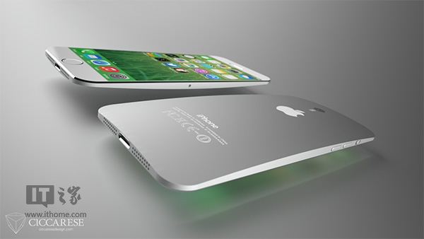 Federico Ciccarese的这个新设计展示了4.7英寸和5.5英寸的两款iPhone6,采用了无边框设计,显示屏直接延展至手机边缘,其弯曲的后壳类似于LG G Flex,并再度使用了Touch ID指纹识别扫描仪。